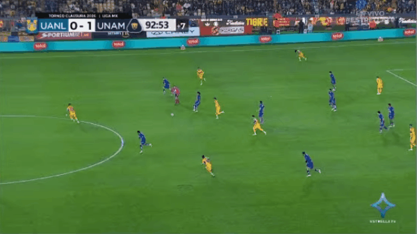 90+3' - 第8张黄牌 - 佩雷拉(老虎大学)