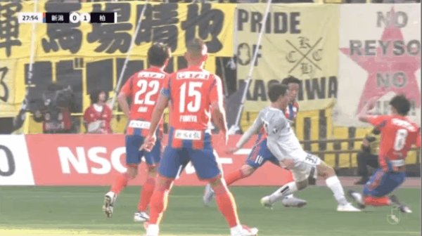 29' - 第1张黄牌,裁判出示了本场比赛的第一张黄牌,给了新潟天鹅