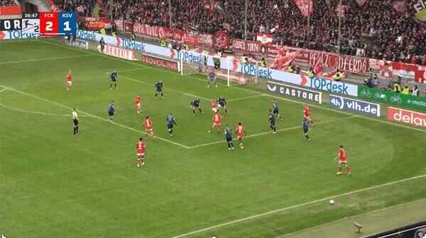3' - 3分钟,凯泽斯劳滕获得本场第1个角球